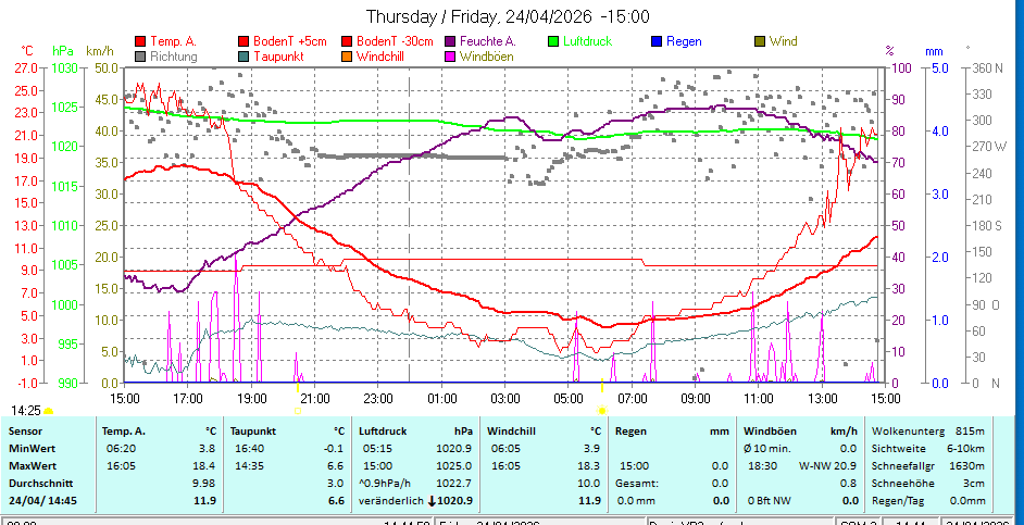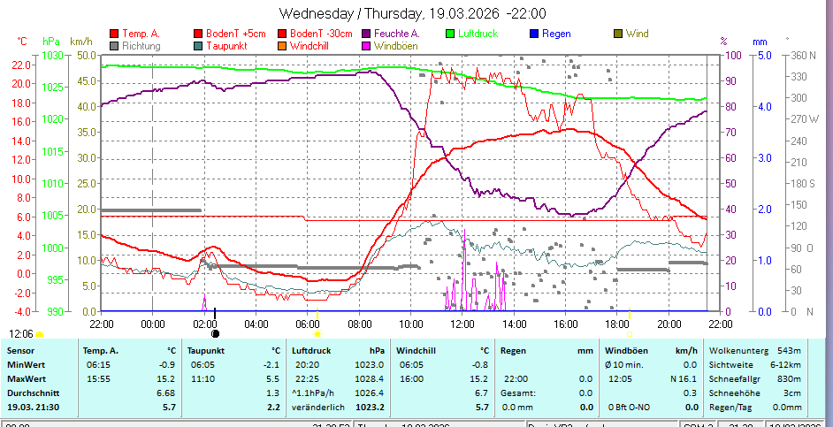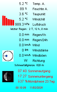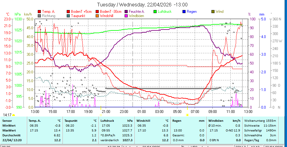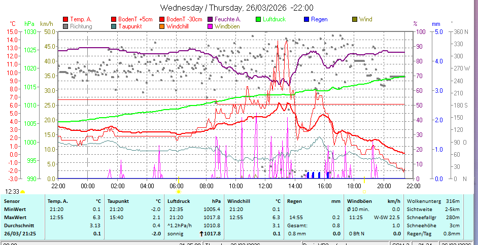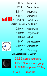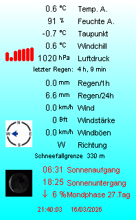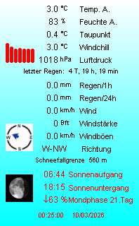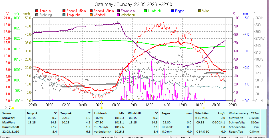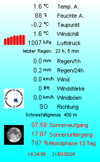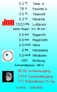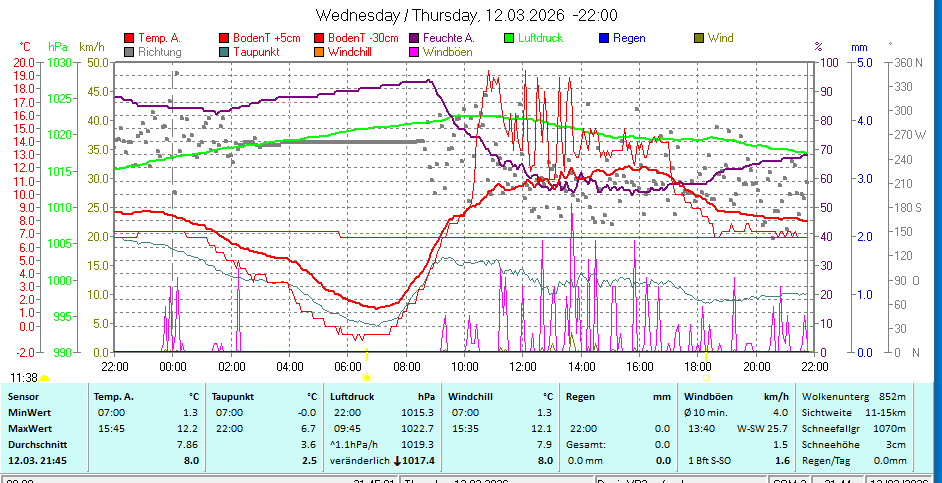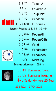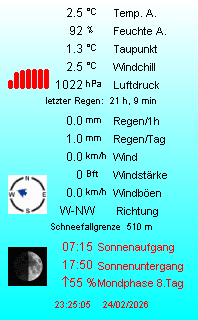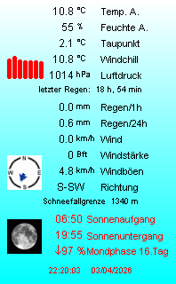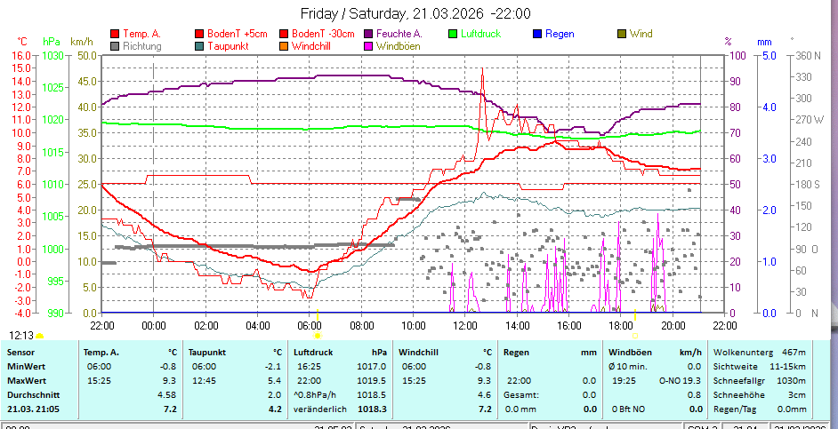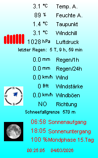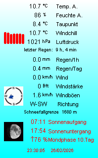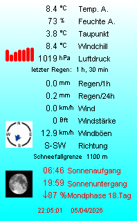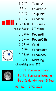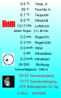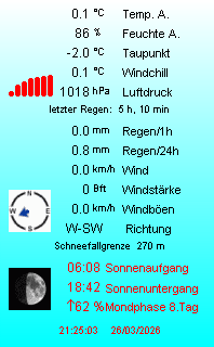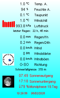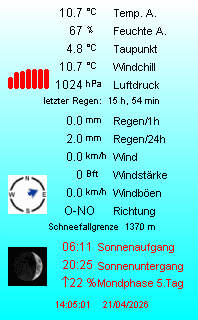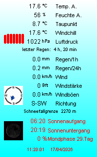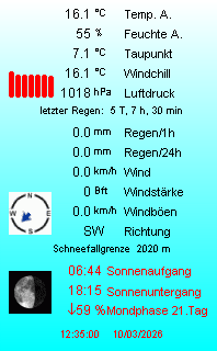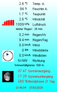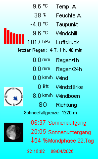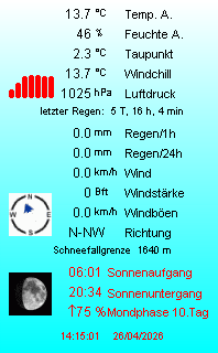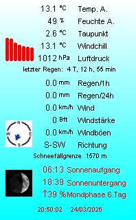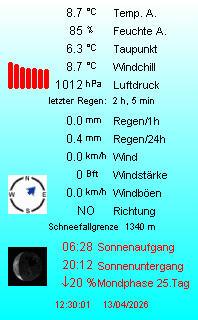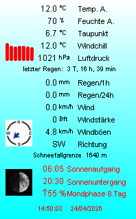Die Wetterdaten werden seit dem 01.01.2012 erfasst. Die gemessenen Daten werden fortlaufend aufgezeichnet und ausgewertet und nach vorgegebenen Intervallen auf dieser Seite publiziert. (c) Sebastian Althaus