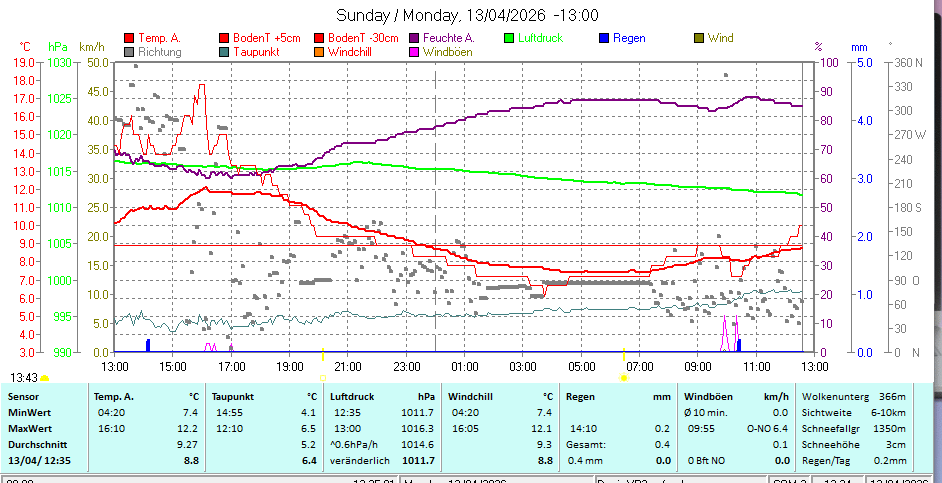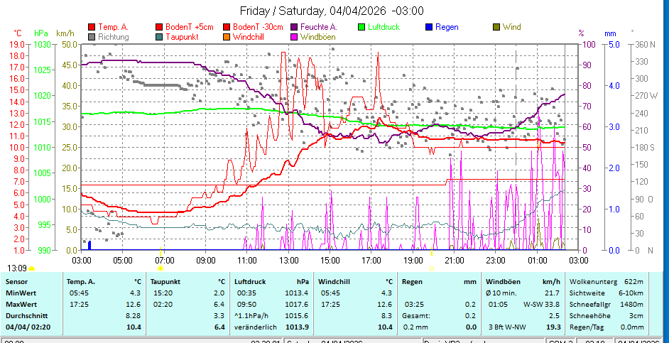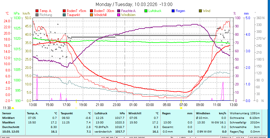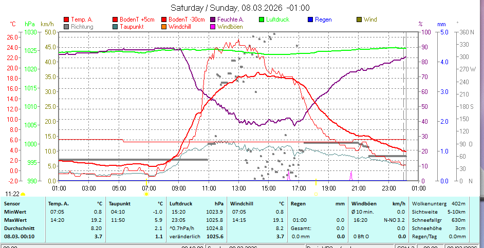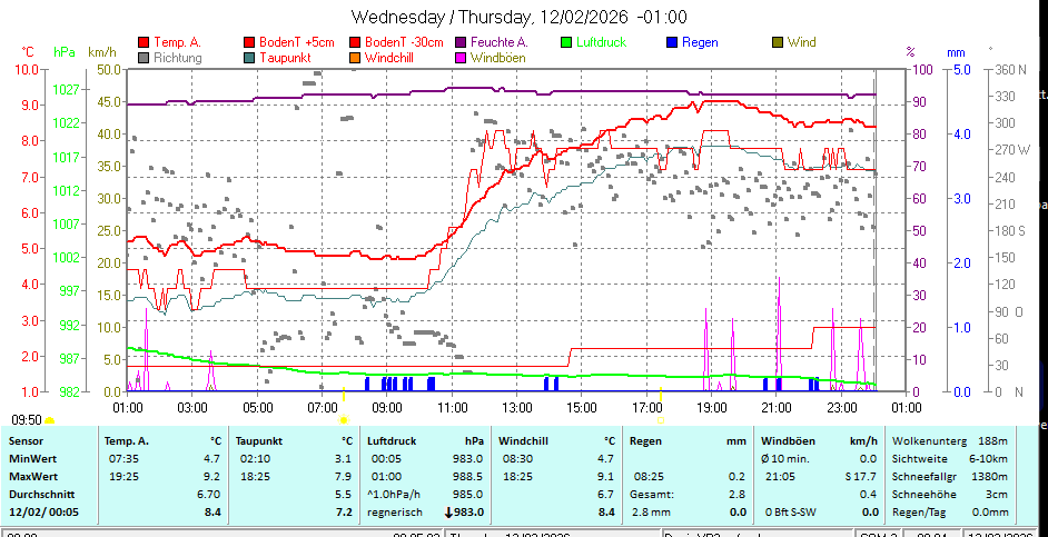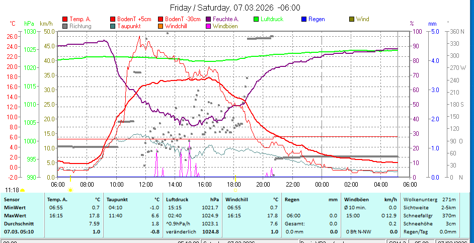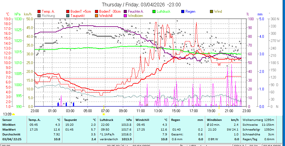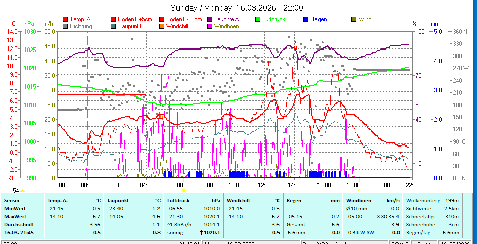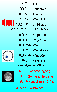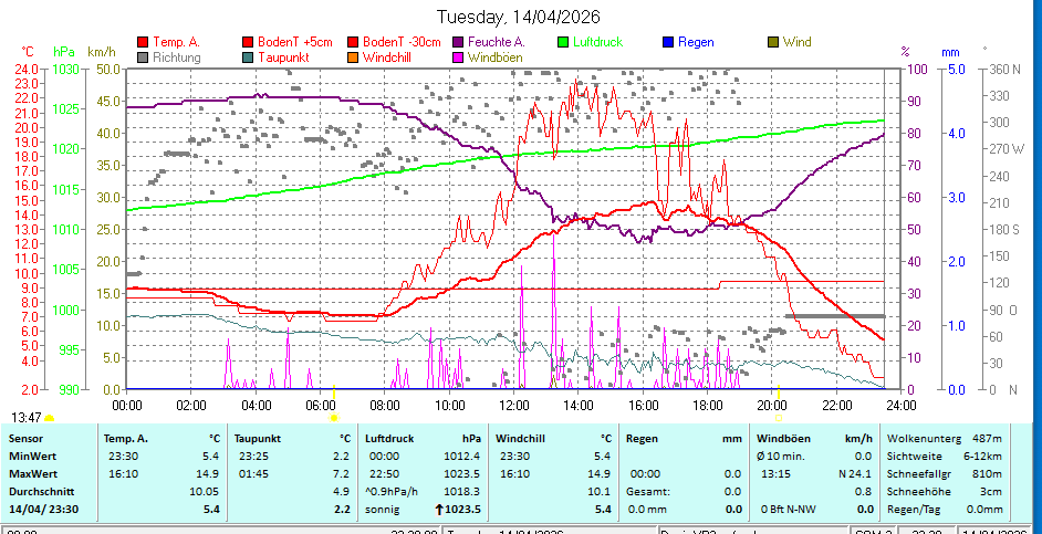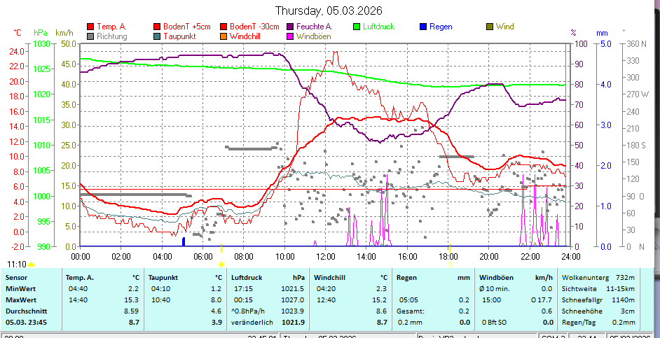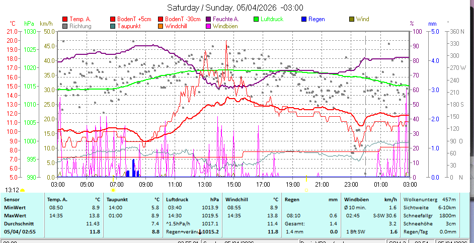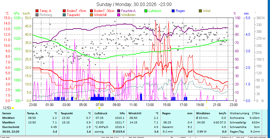 Die Wetterdaten werden seit dem 01.01.2012 erfasst. Die gemessenen Daten werden fortlaufend aufgezeichnet und ausgewertet und nach vorgegebenen Intervallen auf dieser Seite publiziert. (c) Sebastian Althaus