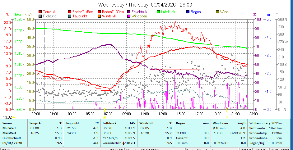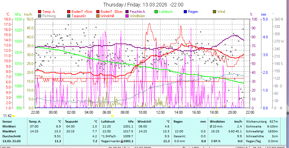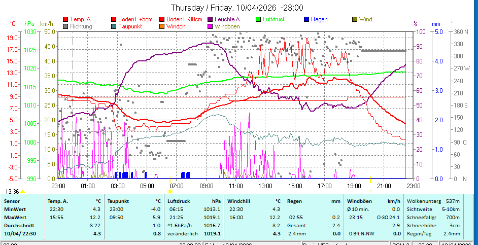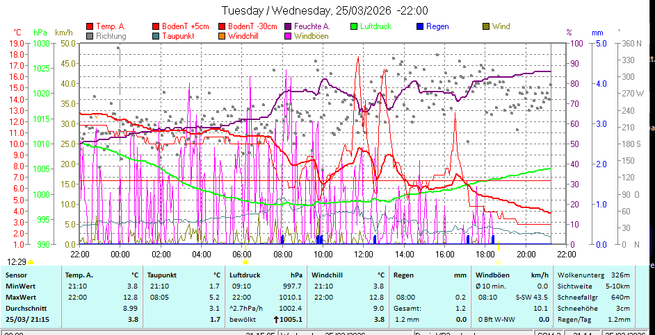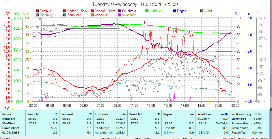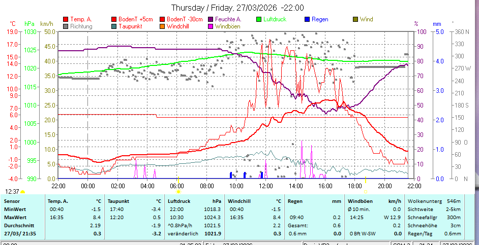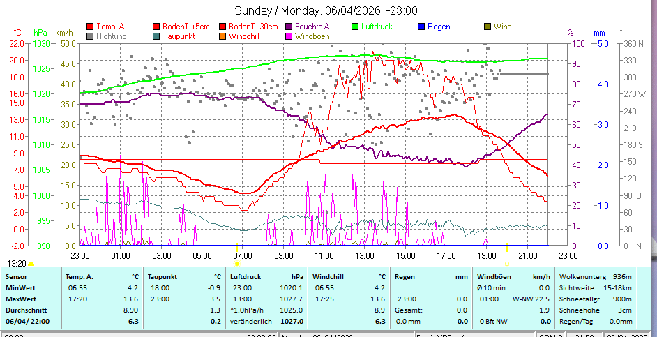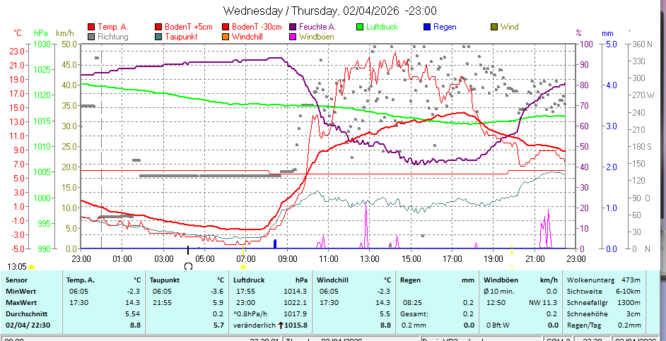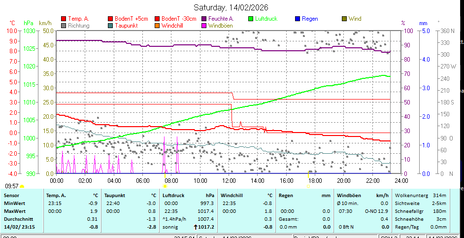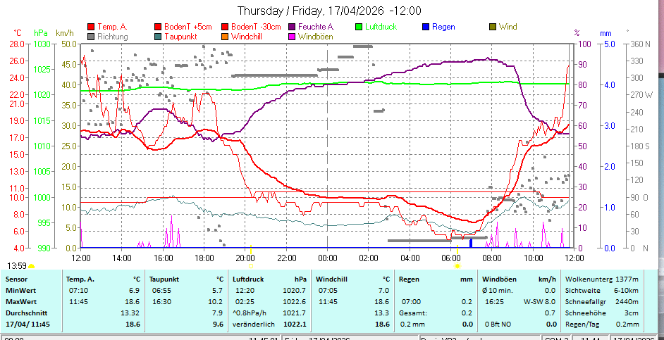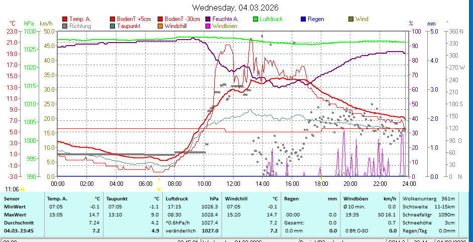 Die Wetterdaten werden seit dem 01.01.2012 erfasst. Die gemessenen Daten werden fortlaufend aufgezeichnet und ausgewertet und nach vorgegebenen Intervallen auf dieser Seite publiziert. (c) Sebastian Althaus