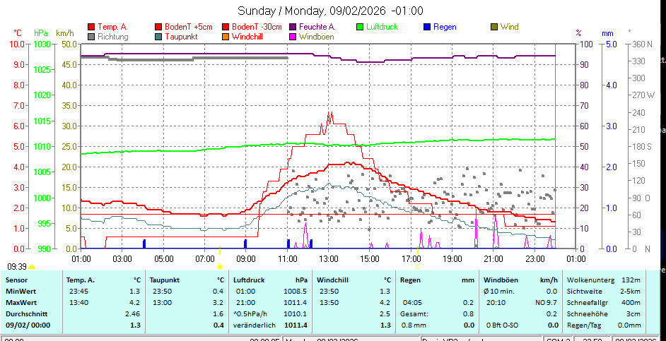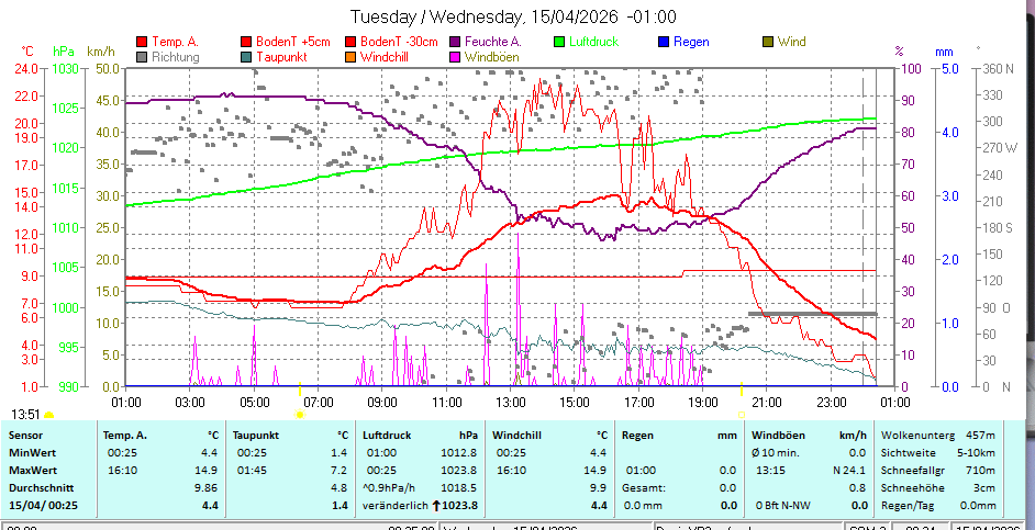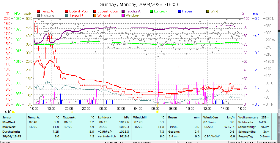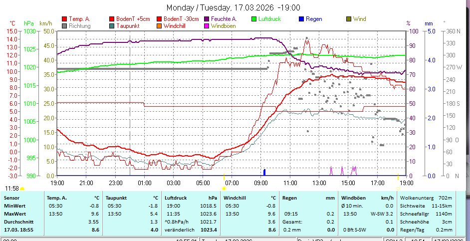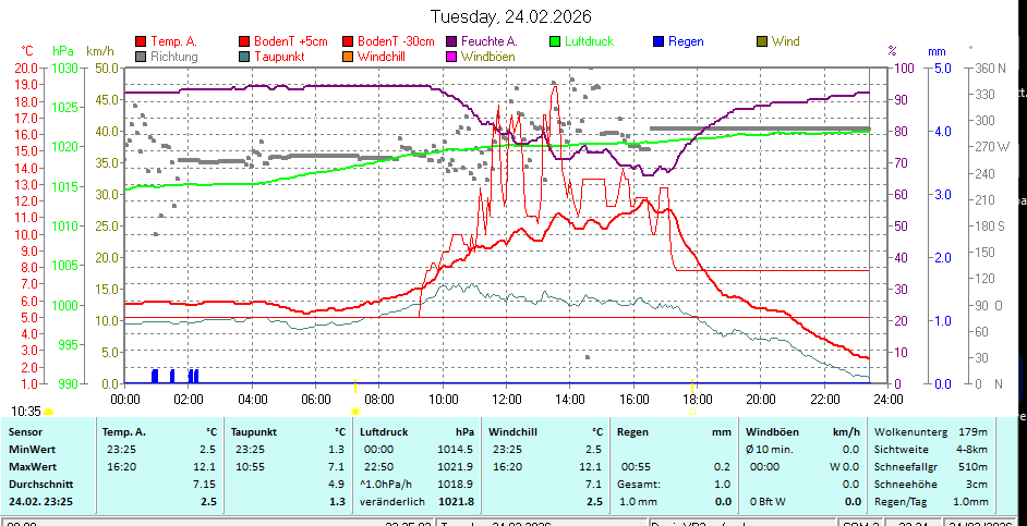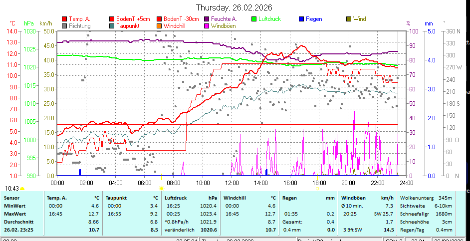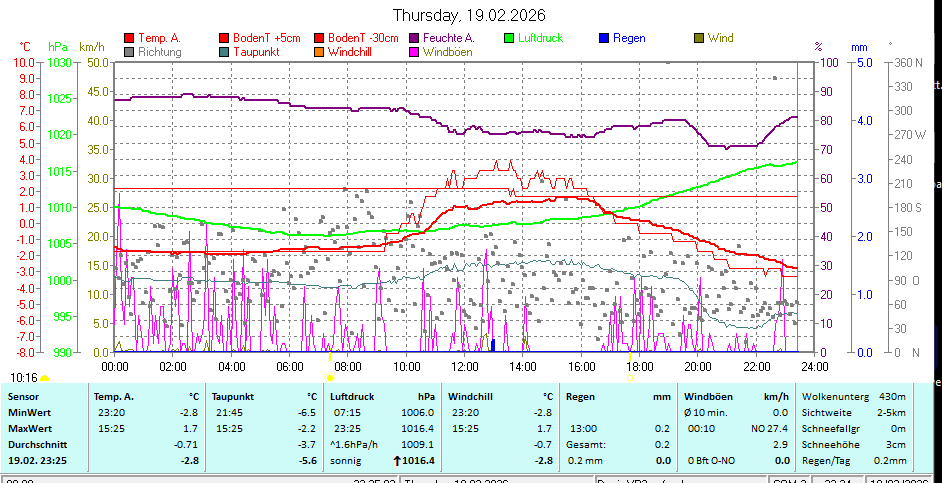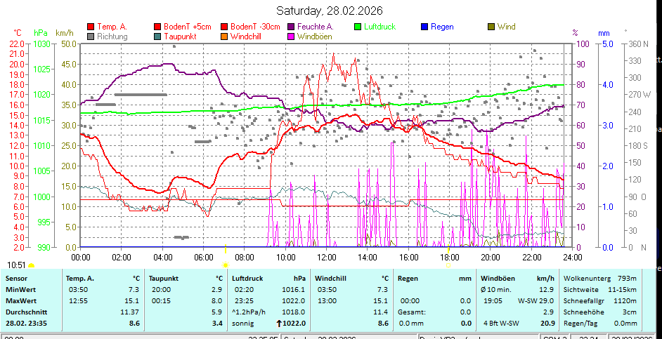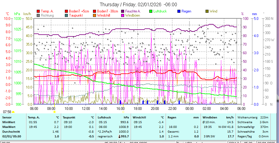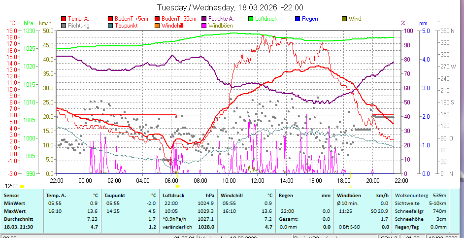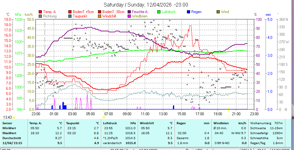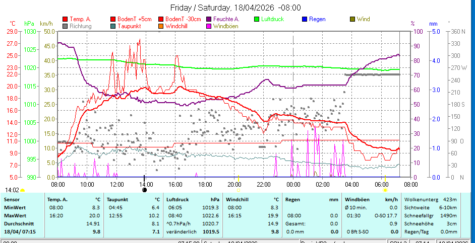 Die Wetterdaten werden seit dem 01.01.2012 erfasst. Die gemessenen Daten werden fortlaufend aufgezeichnet und ausgewertet und nach vorgegebenen Intervallen auf dieser Seite publiziert. (c) Sebastian Althaus
