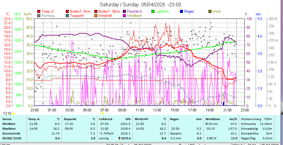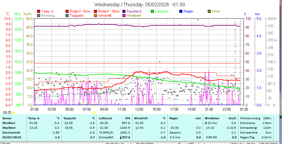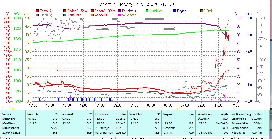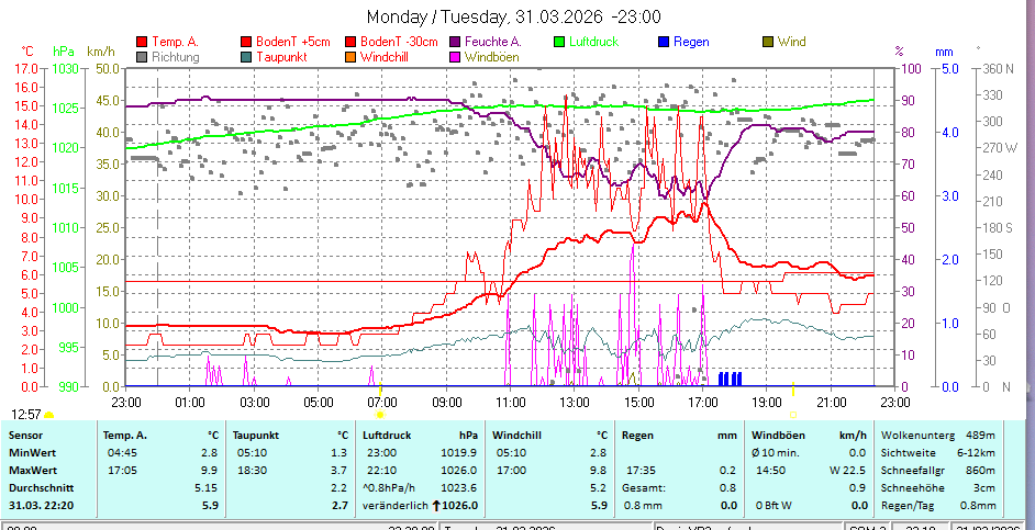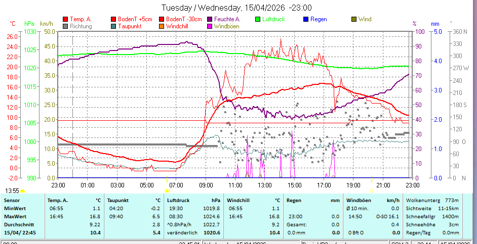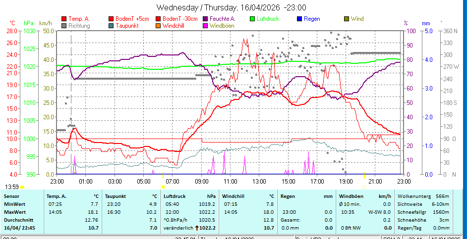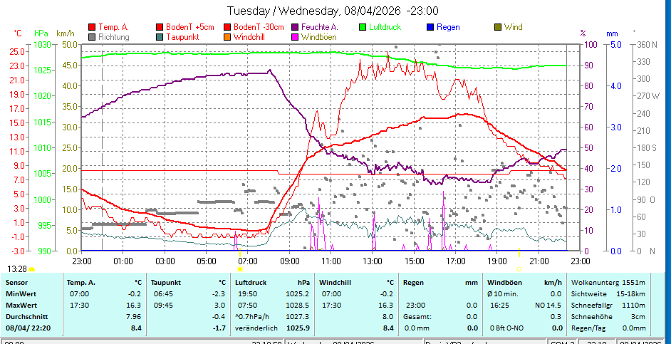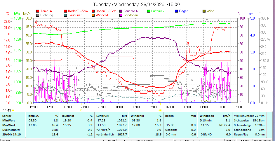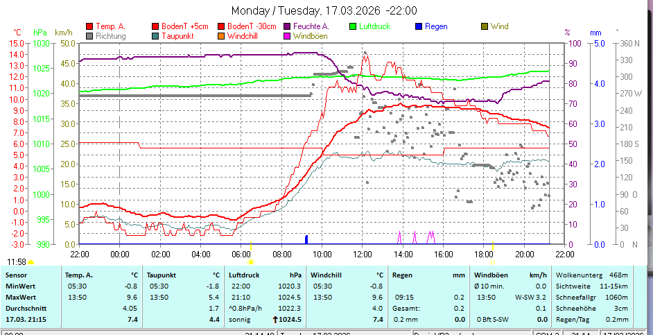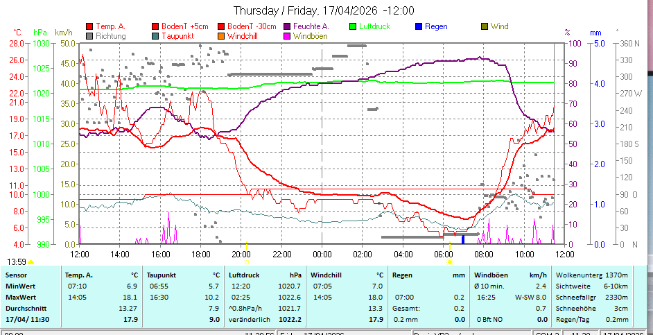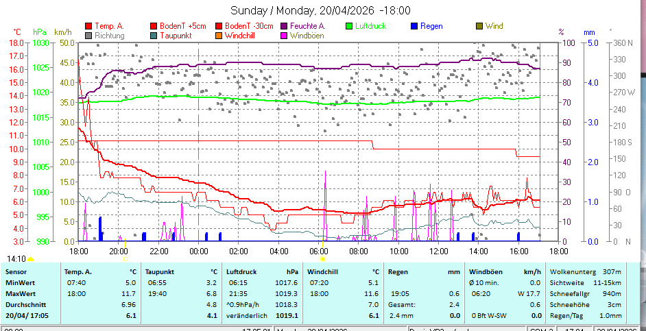Die Wetterdaten werden seit dem 01.01.2012 erfasst. Die gemessenen Daten werden fortlaufend aufgezeichnet und ausgewertet und nach vorgegebenen Intervallen auf dieser Seite publiziert. (c) Sebastian Althaus
