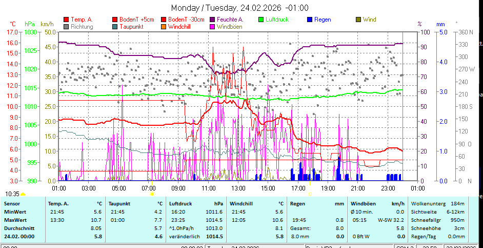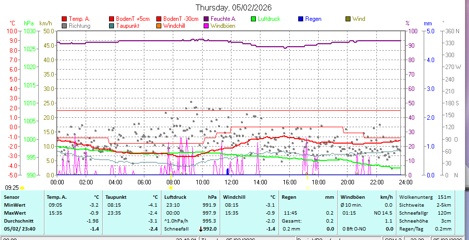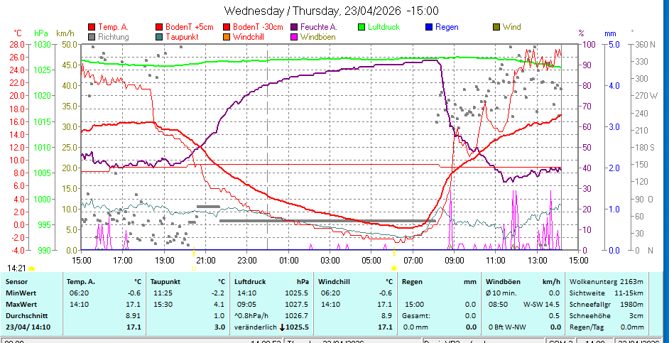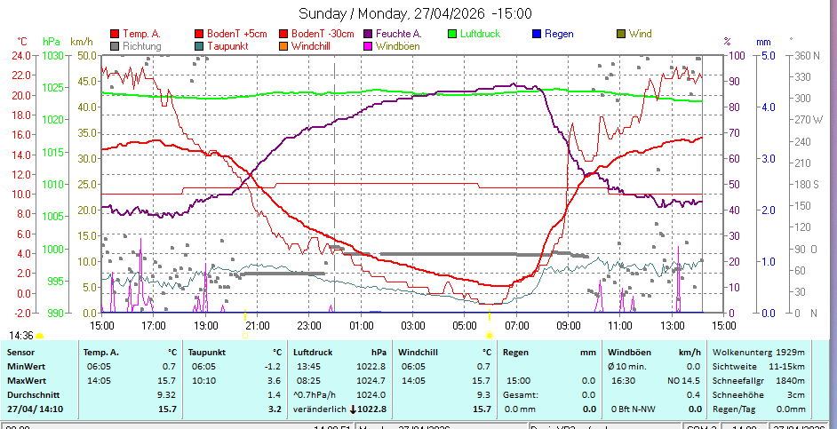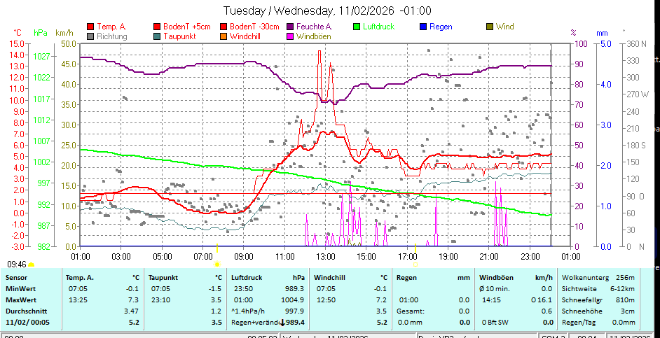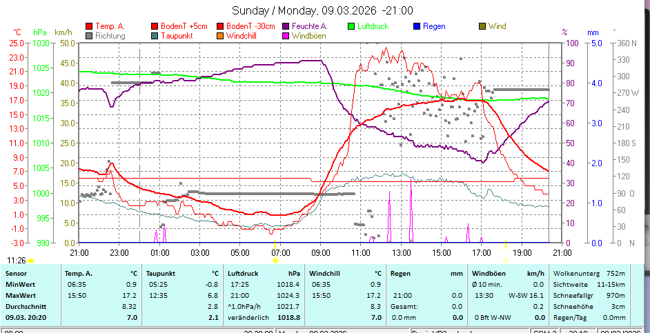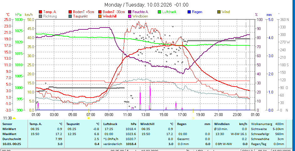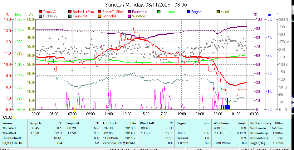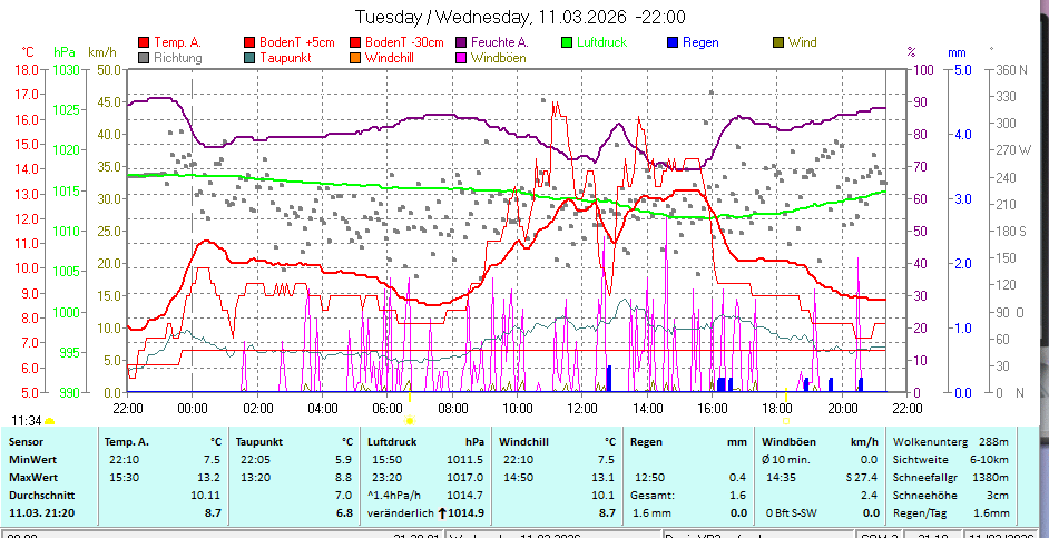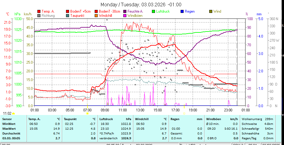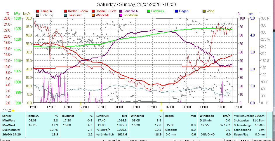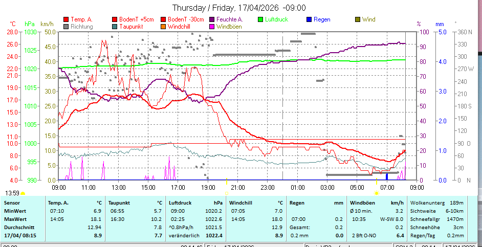 Die Wetterdaten werden seit dem 01.01.2012 erfasst. Die gemessenen Daten werden fortlaufend aufgezeichnet und ausgewertet und nach vorgegebenen Intervallen auf dieser Seite publiziert. (c) Sebastian Althaus