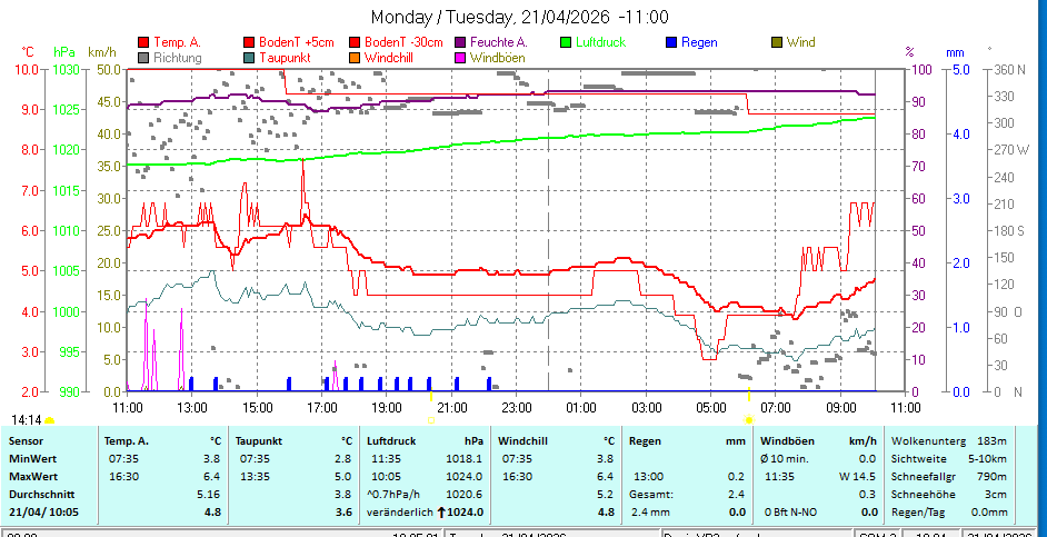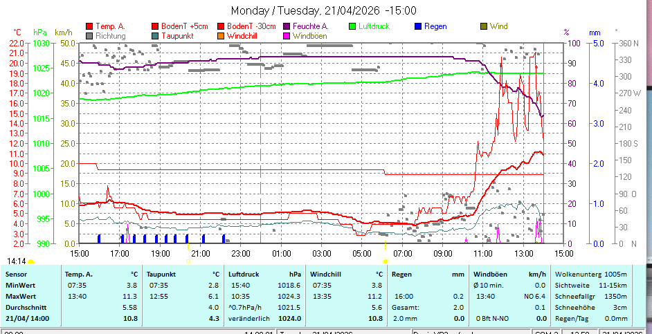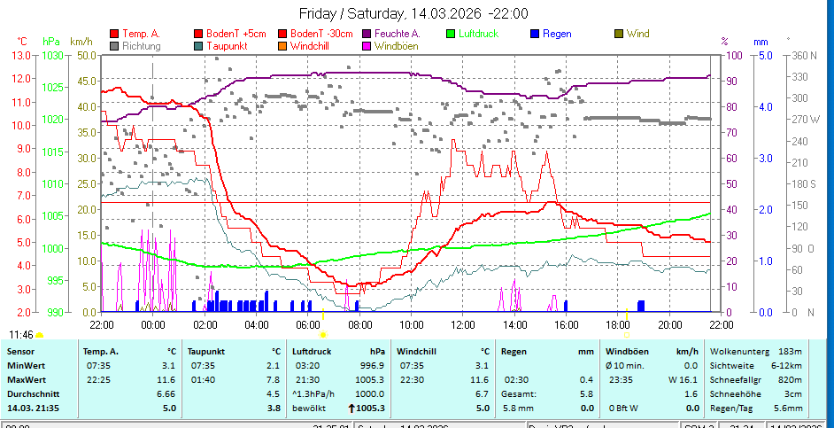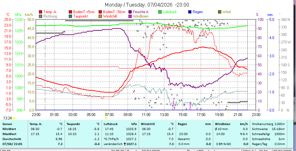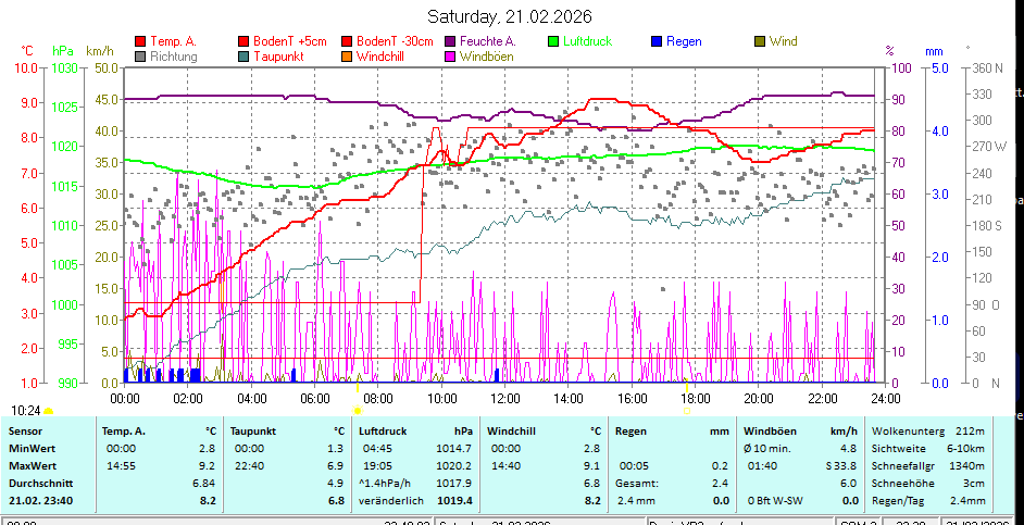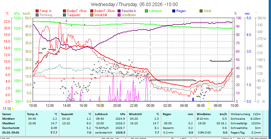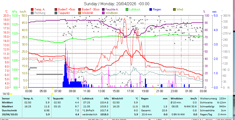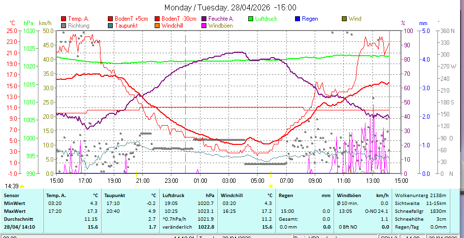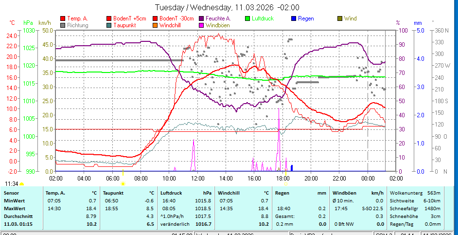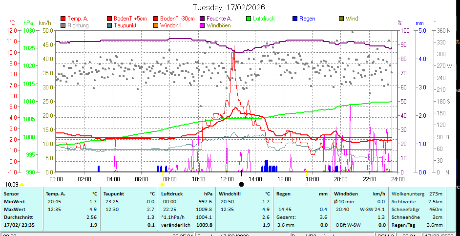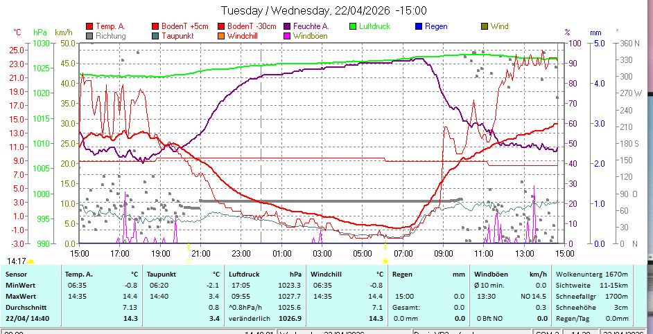 Die Wetterdaten werden seit dem 01.01.2012 erfasst. Die gemessenen Daten werden fortlaufend aufgezeichnet und ausgewertet und nach vorgegebenen Intervallen auf dieser Seite publiziert. (c) Sebastian Althaus