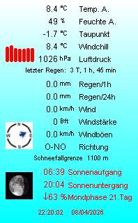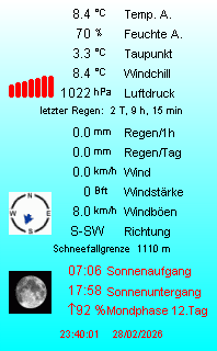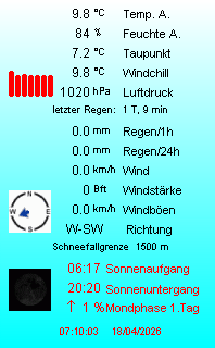 Auf diesem Internetauftritt werden Ihnen aktuelle Wetterdaten aus Heilbad Heiligenstadt und Umgebung zur Verfügung gestellt. Die Wetterstation wird rein privat und ohne gewerblichen Nutzen betrieben.