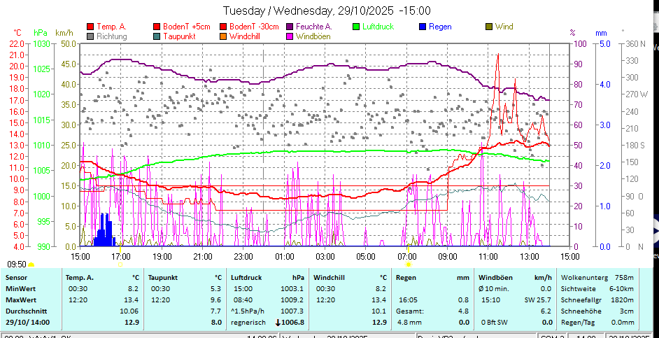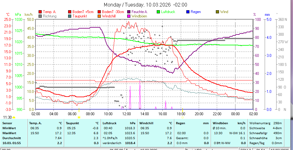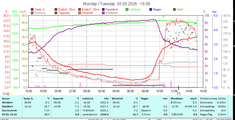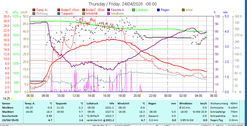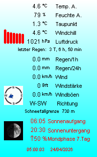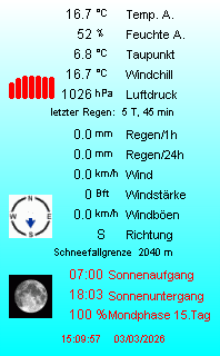 Die Wetterdaten werden seit dem 01.01.2012 erfasst. Die gemessenen Daten werden fortlaufend aufgezeichnet und ausgewertet und nach vorgegebenen Intervallen auf dieser Seite publiziert. (c) Sebastian Althaus