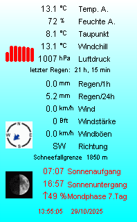 Auf diesem Internetauftritt werden Ihnen aktuelle Wetterdaten aus Heilbad Heiligenstadt und Umgebung zur Verfügung gestellt. Die Wetterstation wird rein privat und ohne gewerblichen Nutzen betrieben.